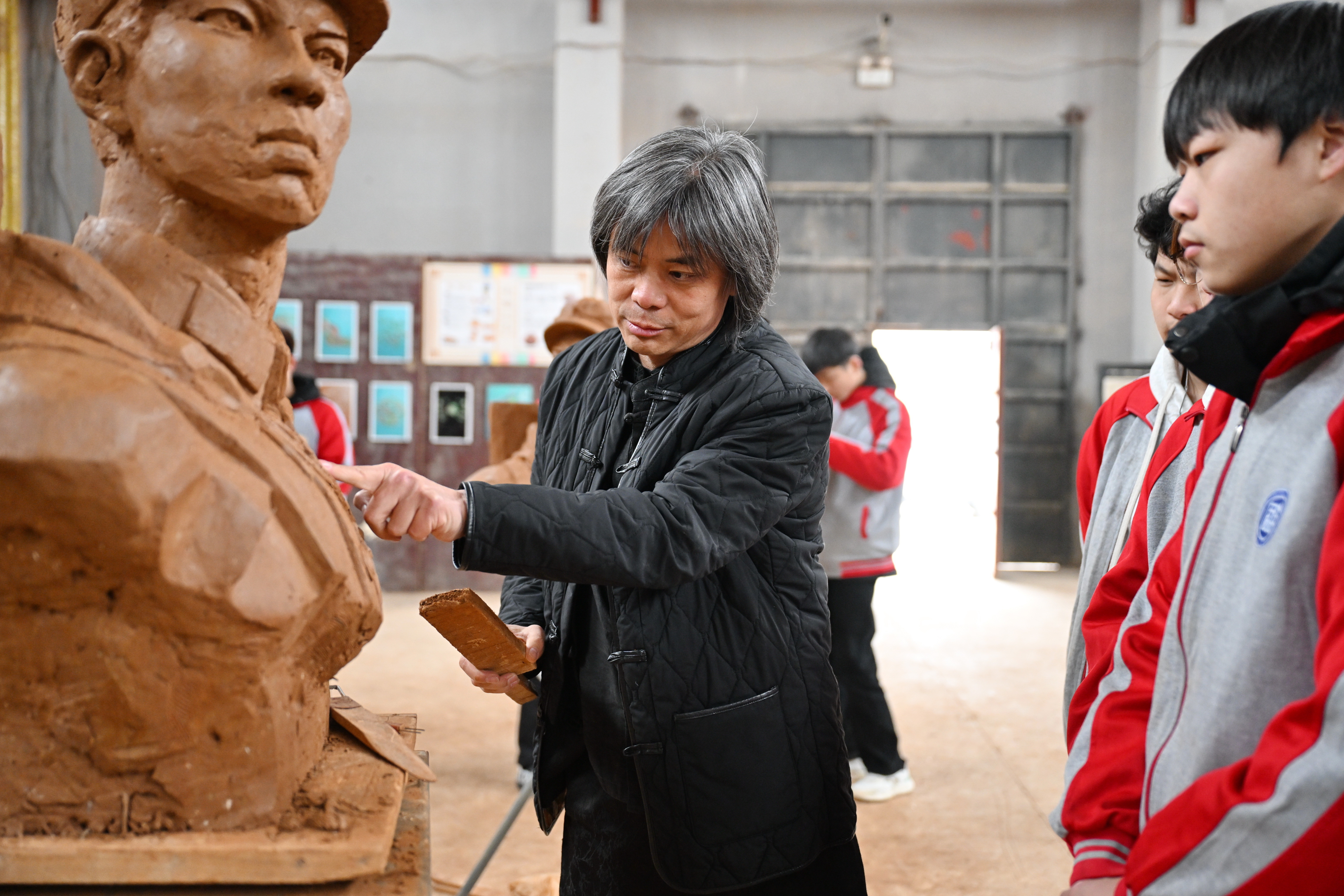 高英坡在河北曲阳雕刻学校指导学生进行雕塑创作(2025年2月21日摄)。履职过程中,高英坡深入走访企业、文化场馆、学校等地,围绕文化产业发展现状、传统工艺项目保护等问题展开调研。